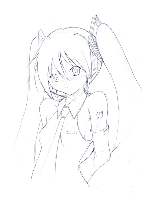 落書き。ではなく以前TPのミクシ画像用に描いたミクが気に入らなかったので、描き直そうと思って描いたもののラフ。