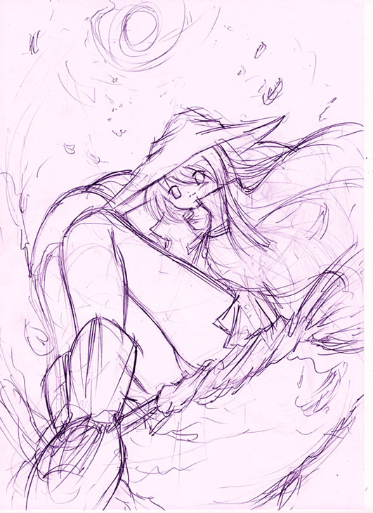 突発的に魔女が描きたくなったのでラフ描いてみました。気づけばパンチラがデフォルトになってる自分ガイル・・・。でも魔女→ホウキ→パンチラはジブリも認める常識です。